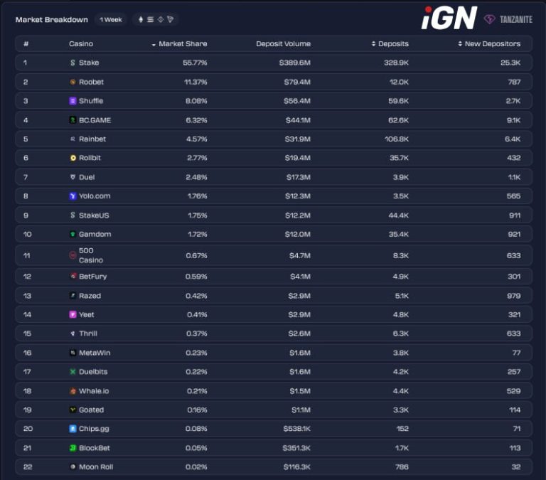 Лидеры и аутсайдеры по депозитам в криптоказино (13-20 октября 2025)