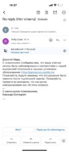 Я написал менеджеру через которого сотрудничал с ними год назад, на что он мне ответил что пользовал якобы скинул какие-то переводы от арабов (что за бред?) и тем самым не прошел вериф. На просьбу предоставить какие-то подробности менеджер просто повторял что это не мое и не его дело и человек должен лично обращаться в поддержку. Когда я скинул ему что поддержка игнорит игрока уже на протяжении 3 месяцев, он начал писать откровенный бред, оправдывая это тем что игрок «угрожал» менеджеру, когда тот пытался ему помочь. На вопросы что делать и куда обращаться пользователю продолжал угарать про «поддержку». Игрок сказал что на почту лицензии также писал, никакого ответа не получил»