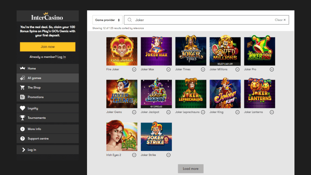 Ассортимент – один из заметных плюсов InterCasino: более 600 игр для компьютеров и свыше 400 для мобильных устройств. На площадке представлены автоматы, столы с дилерами, лотереи, карточные игры и ставки на виртуальный спорт. Казино сотрудничает с сотней провайдеров, среди которых NetEnt, Playtech, Nolimit City, Play’n GO, Microgaming, Pragmatic Play, Evolution Gaming и другие. Есть прямые трансляции с живыми дилерами и интересные игровые шоу, поддерживается удобная мобильная версия без необходимости установки приложений.