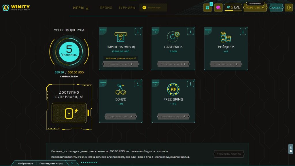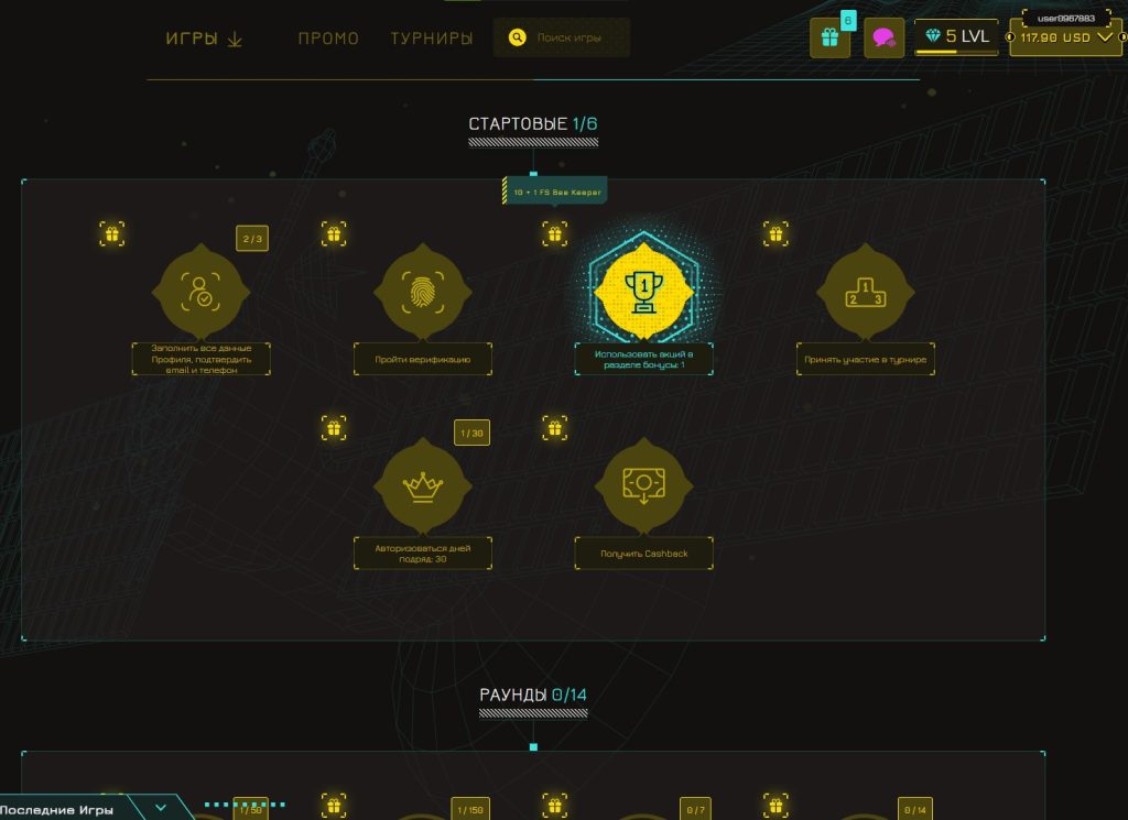 Казино с упором на геймификацию, в процессе игры каждый клиент может настроить (прокачать) свой профиль под более интересные для себя награды. Кроме того особое внимание уделено многодневным акциям, когда игроку нужно выполнять определённый квест каждый день, это повышает вовличённость игроков на длительный срок.