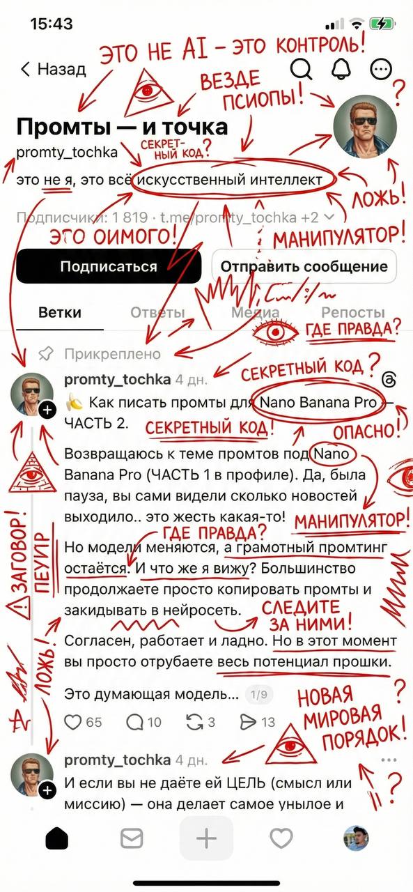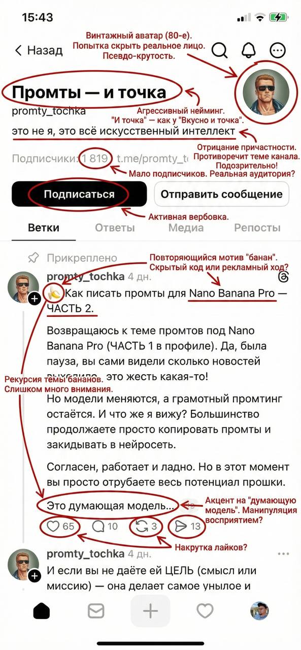 Делаем разбор профиля в стиле шизофреника, психолога и смм-эксперта в Nano Banana Pro.