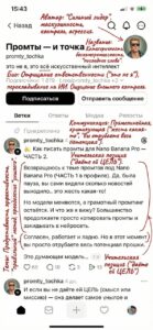 Overlay this with structured psychological notes, red ink — concise Russian annotations about the emotional tone of the avatar, naming style, bio wording, communication patterns, and recurring themes in posts.