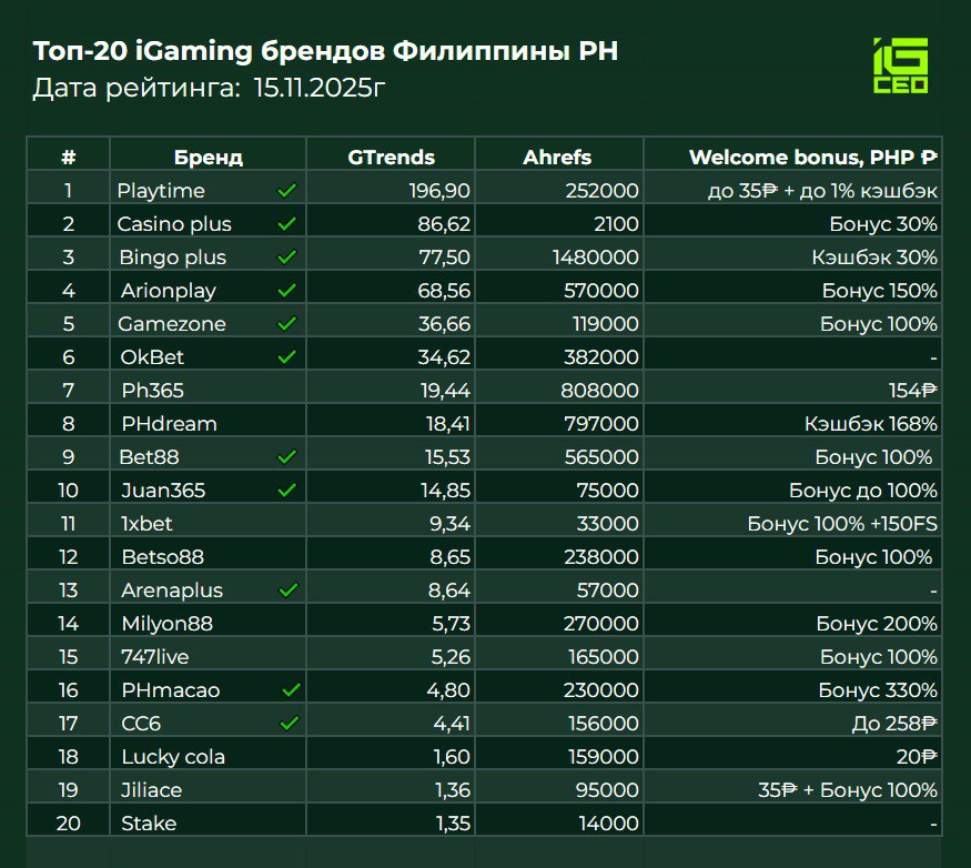 Нелегально: онлайн-казино без лицензии PAGCOR и иностранные сайты, таргетящие игроков Филиппин. (источник)