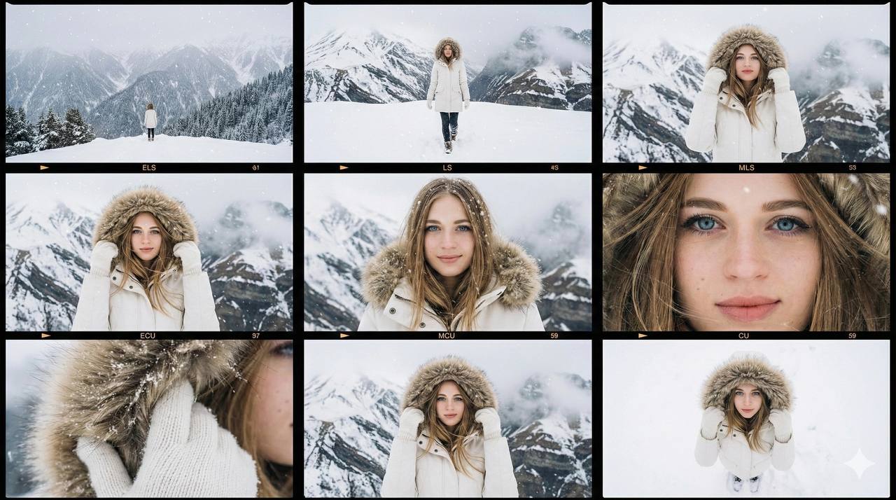 Лайфхак: Хочешь, чтобы сетка была не просто набором ракурсов, а мини-сюжетом (3-е фото в посте)? Добавь в конец промта: «Add gentle narrative continuity from frame 1 to frame 9.»