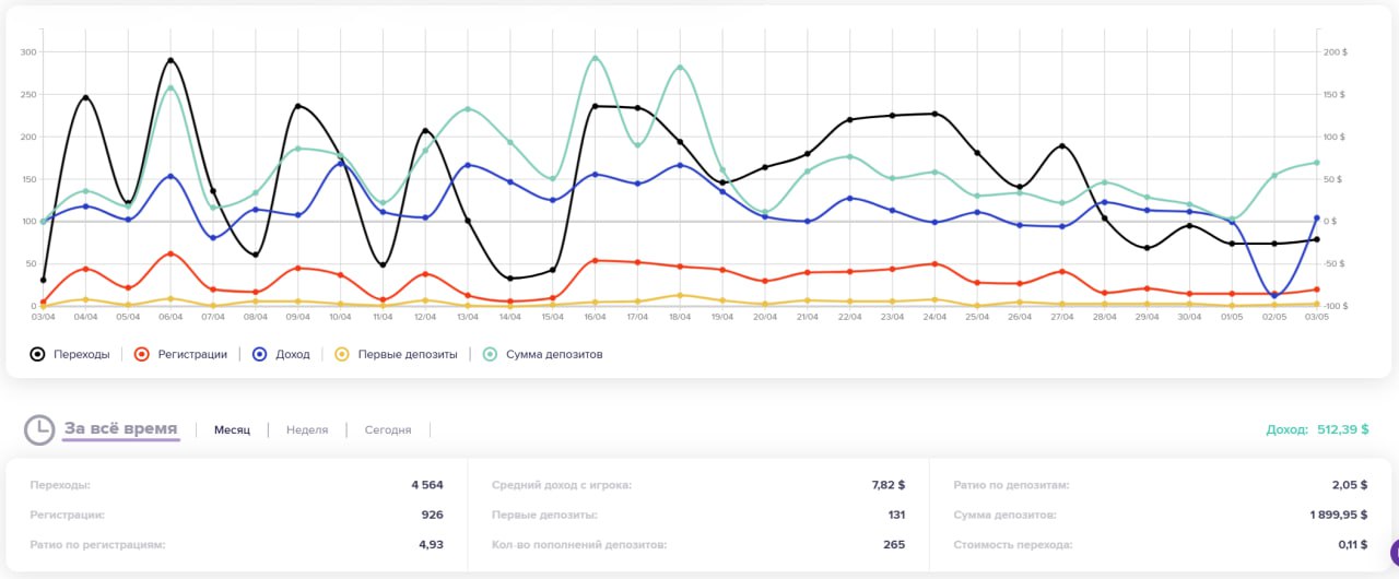 Давно уже не публиковал статы партнёрок, хочу поделиться статистикой первого месяца работы с 1win. Кросс-бренд траф с ТИЕР-2 ГЕО. Под трафик, партнёркой, был запилен неплохой лендос, хорошо конвертящий из клика в регу. Но, как видите, в перводеп конверт гораздо ниже, что было вполне ожидаемо. Также суммы депов низкие, что также было ожидаемо от этого гео. В целом продолжаю лить, посмотрим, что получится из этого трафа на дистанции, скажем, 3 месяца или пол года. А, ну и планирую ещё нарастить траф