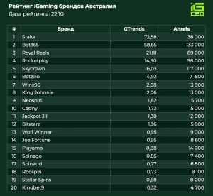 Обзор топ-20 iGaming брендов Австралии за последние 30 дней. Узнайте, какие компании занимают лидирующие позиции и как ACMA усиливает контроль над нелегальными операторами.