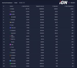 Обзор лидеров и аутсайдеров по депозитам в криптоказино за период с 13 по 20 октября 2025 года. Данные по брендам и динамике рынка от Tanzanite.