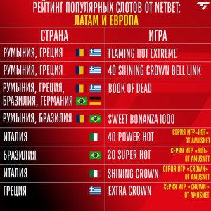 Обзор популярных слотов от NetBet в странах Европы и Латинской Америки. Анализ трендов и предпочтений игроков в разных регионах.