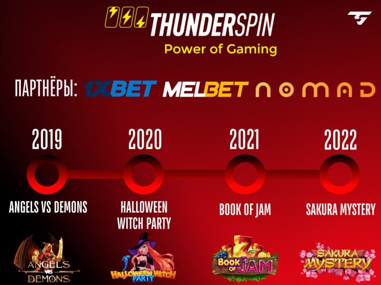 ThunderSpin — основанный в 2015 году разработчик, специализирующийся на слотах. Темп выпуска продуктов — до 10 релизов в год.