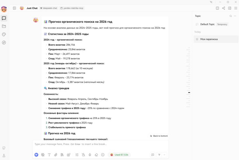 Yandex Metrika MCP Server на базе Node.js, LobeChat и DeepSeek